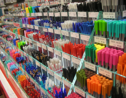 볼펜, 지우개 등을 비롯한 각종 학용품입니다.