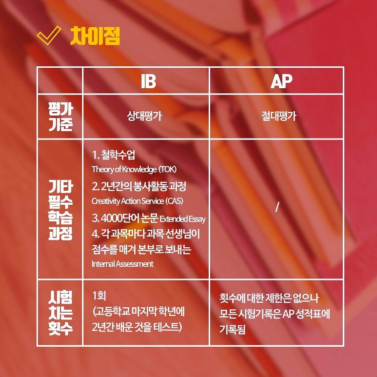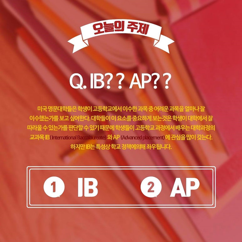 혹시라도 AP와 IB가 무엇인지 정확히 모르시는 분들을 위해