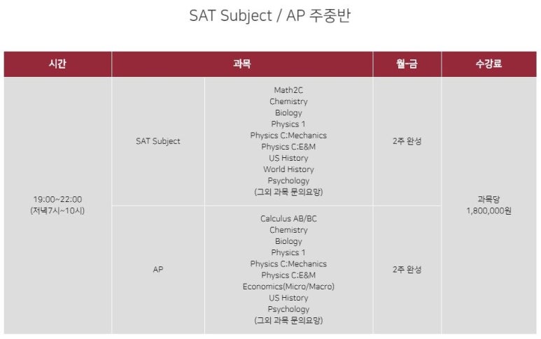 3.SAT Subject / AP 주중반