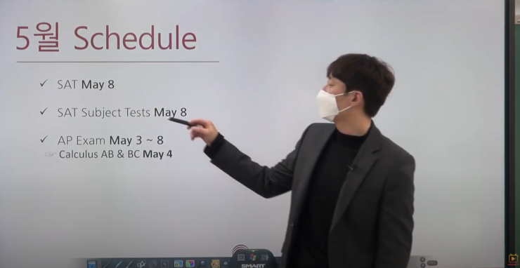 5월 SAT 일정에 대해서도 설명해주었어요.