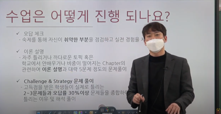 실제 수업에서 1) 오답체크, 2) 이론 설명, 3) Challenge & Strategy 문제 풀이를 중심으로