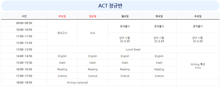 강남 ACT학원추천 인/터/프/렙 봄학기 시간표입니다