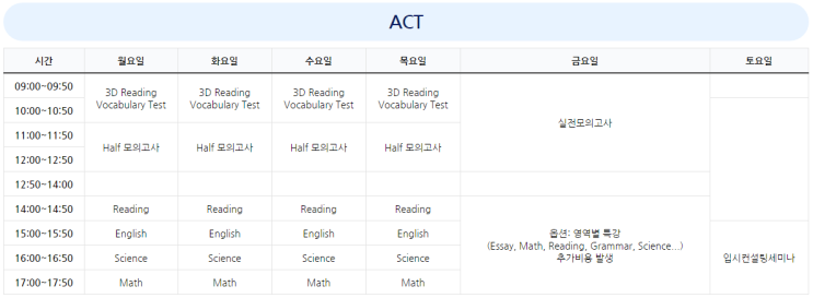강남 ACT학원추천 인/터/프/렙 ACT 여름 특강 시간표입니다