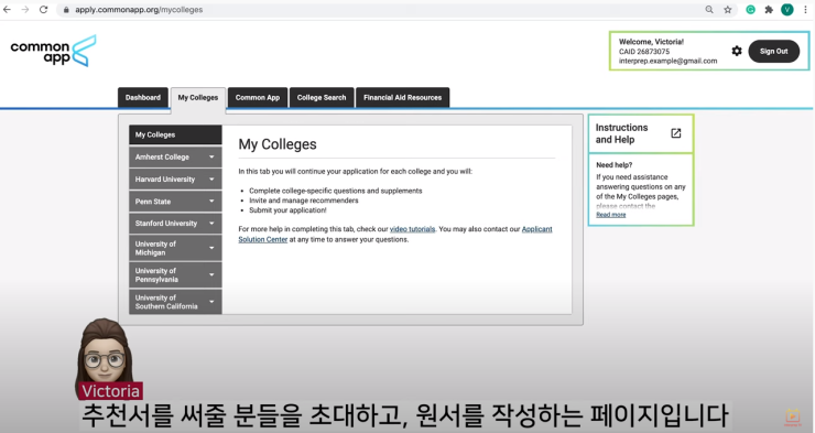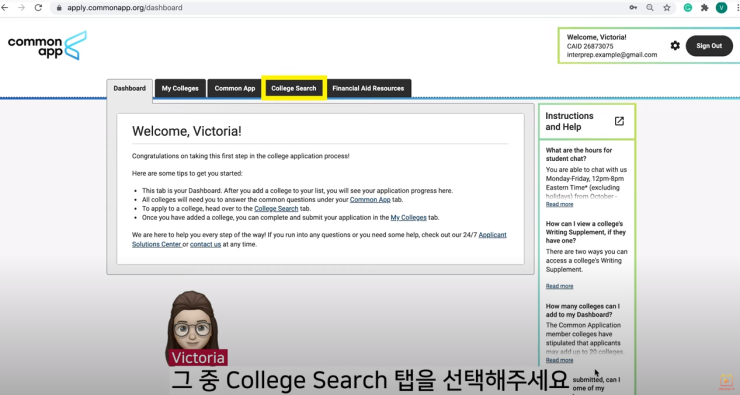 먼저, 커먼앱 (Common Application)에 들어가게 되면,