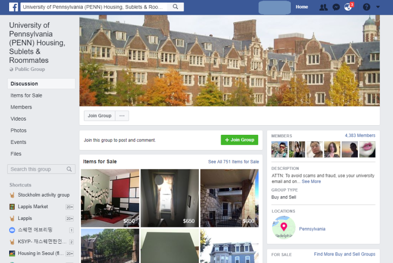 아래 그림은 페이스북에서 'University of Pennsylvania housing'를